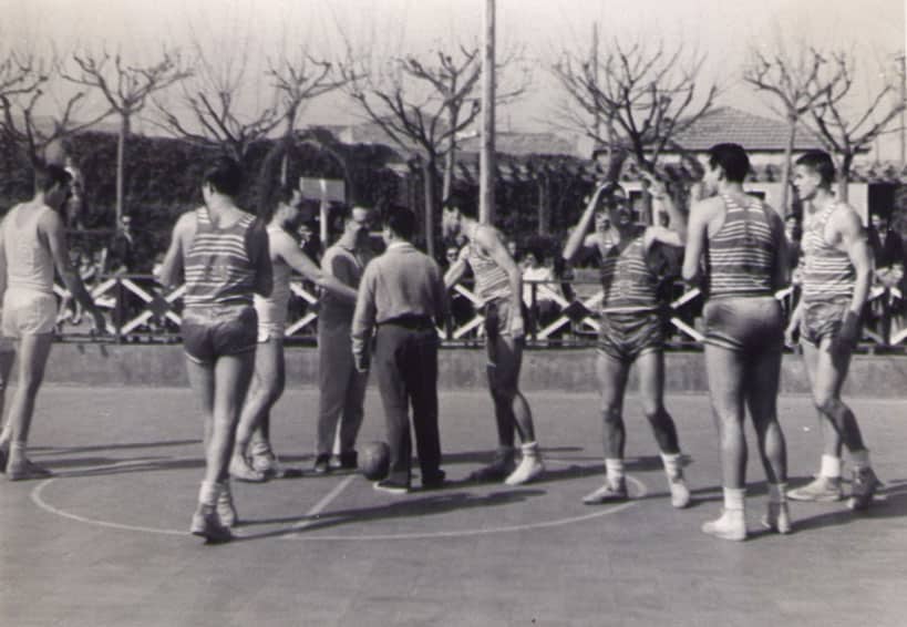 Partido en Cataluña (Mongat – Aguilas), Jose Ig. Garamendi (árbitro) y a la izquierda Agustín Esparta