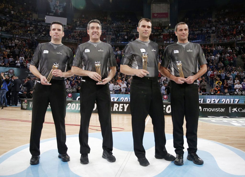 Juan Carlos García, gracias a sus buenas actuaciones, fue premiado con la inclusión en el equipo arbitral que dirigió el encuentro Final de Copa en la Liga Endesa Aparece esta foto en la página 546 del libro (Saskibaloiaren 75 Urteko Ibilbidea Bizkaian/75 Años de Baloncesto en Bizkaia)