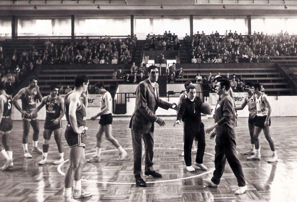 Fede Alonso realizando el saque de honor en el partido de su despedida el 2 de Nioviembre de 1969, Águilas contra el Real Madrid Aparece esta foto en la página 134 del libro (Saskibaloiaren 75 Urteko Ibilbidea Bizkaian/75 Años de Baloncesto en Bizkaia)
