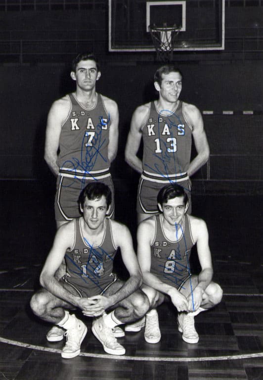 Jugadores locales pertenecientes a la plantilla de la S.D. Kas Aparece esta foto en la página 171 del libro (Saskibaloiaren 75 Urteko Ibilbidea Bizkaian/75 Años de Baloncesto en Bizkaia)