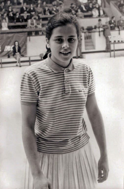 Jugadora del Sagrado Corazón de Bilbao, elegida como mejor deportista femenina de Vizcaya en la Temporada 1964-65 Aparece esta foto en la página 107 del libro (Saskibaloiaren 75 Urteko Ibilbidea Bizkaian/75 Años de Baloncesto en Bizkaia)