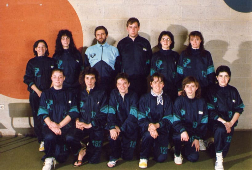 Campeónas de liga, subcampeonas de copa, de izquierda a derecha, de pie: Aitziber Rica, Begoña Martinez,Juan Gondra (Del.), Juan Carlos Villa (Ent.), Izsaskun Cano, Susana Barona, agachadas: Marian Moreno, Arantza Ugarte, Charo Ortuoste, Luisa Mujika, Belen Fernandez, Esther Gutierrez. (Ausente): Yolanda Luzuriaga