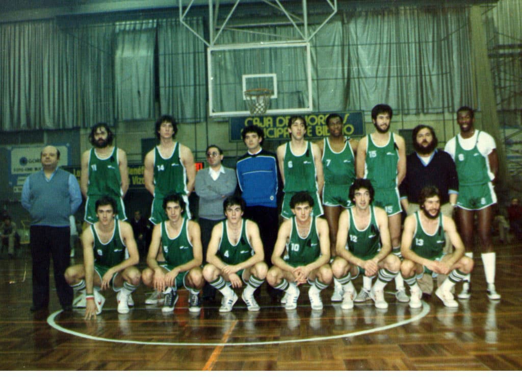 Partido celebrado con objeto de recaudar fondos para las familias afectadas por las inundaciones de Ortuella. El combinado vasco dirigido por Iñaki Iriarte y compuesto por los jugadores del Baskonia : Stielper, Querejeta, Cambronero, Conde y Segurola y del Patronato : Davalillo, Anasagasti, Betolaza, Laria y Cuadra, reforzados por Copelland (Helios), Hollis (Areslur) , se enfrentaron al Real Madrid y fue arbitrado por Neyro y Cuadra. Aparece esta foto en la página 223 del libro (Saskibaloia ren 75 Urteko Ibilbidea Bizkaian/75 Años de Baloncesto en Bizkaia)