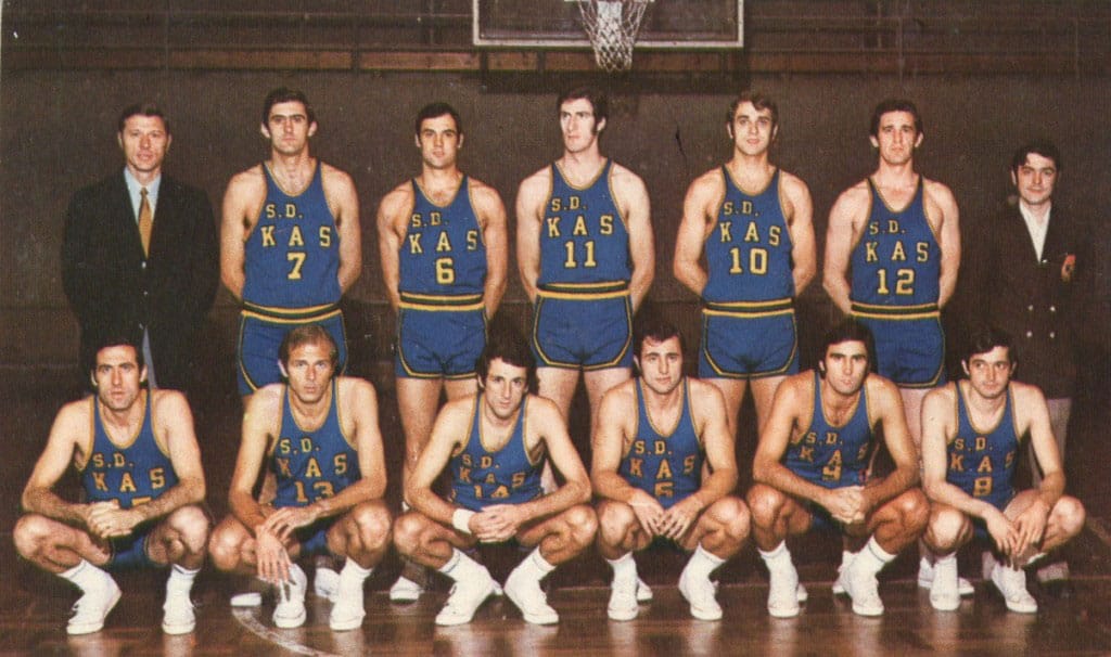 De izquierda a derecha : de pie, Wilbur Ernst (entrenador), Peru Izaguirre, Jesus Iradier, Luis M. Junguitu, Pedro Guimerá, José L. Sagi-Vela, Juan I. Solozabal (delegado), agachados : José L. Lázaro, Juanchu Urberuaga, Iñaki Sarria, Mani Gonzalez, Chema Gonzalez-Capetillo, Alejandro Zamora. Aparece esta foto en la página 154 del libro (Saskibaloiaren 75 Urteko Ibilbidea Bizkaian/75 Años de Baloncesto en Bizkaia)