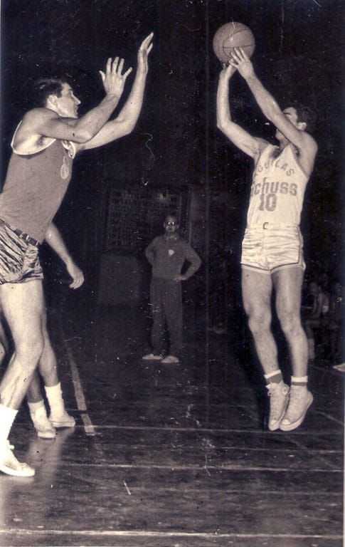Una perfecta suspensión de dicho jugador Aparece esta foto en la página 113 del libro (Saskibaloiaren 75 Urteko Ibilbidea Bizkaian/75 Años de Baloncesto en Bizkaia)