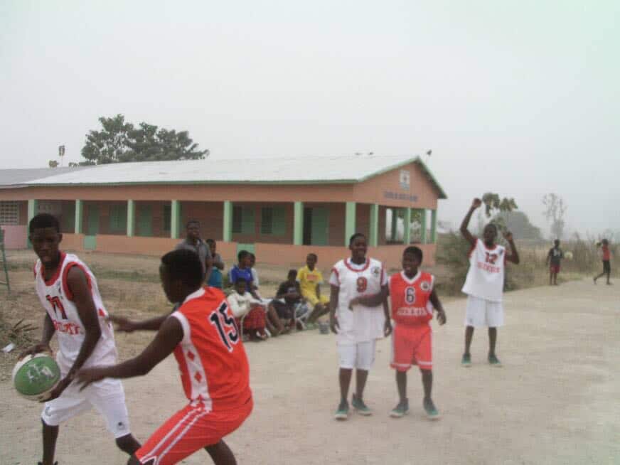 Desde Kandi (Benin) el Padre Theo nos envía unas preciosas fotos, en las que podemos ver a los chicos divirtiéndose con el basket y luciendo los colores de Bizkaia, nuestro balón y unas fantásticas zapatillas que en su momento les enviamos. Para ellos, está suponiendo una alegría el poder practicar el deporte con el material facilitado por la FViB y la Fundación BizkaiaBasket.