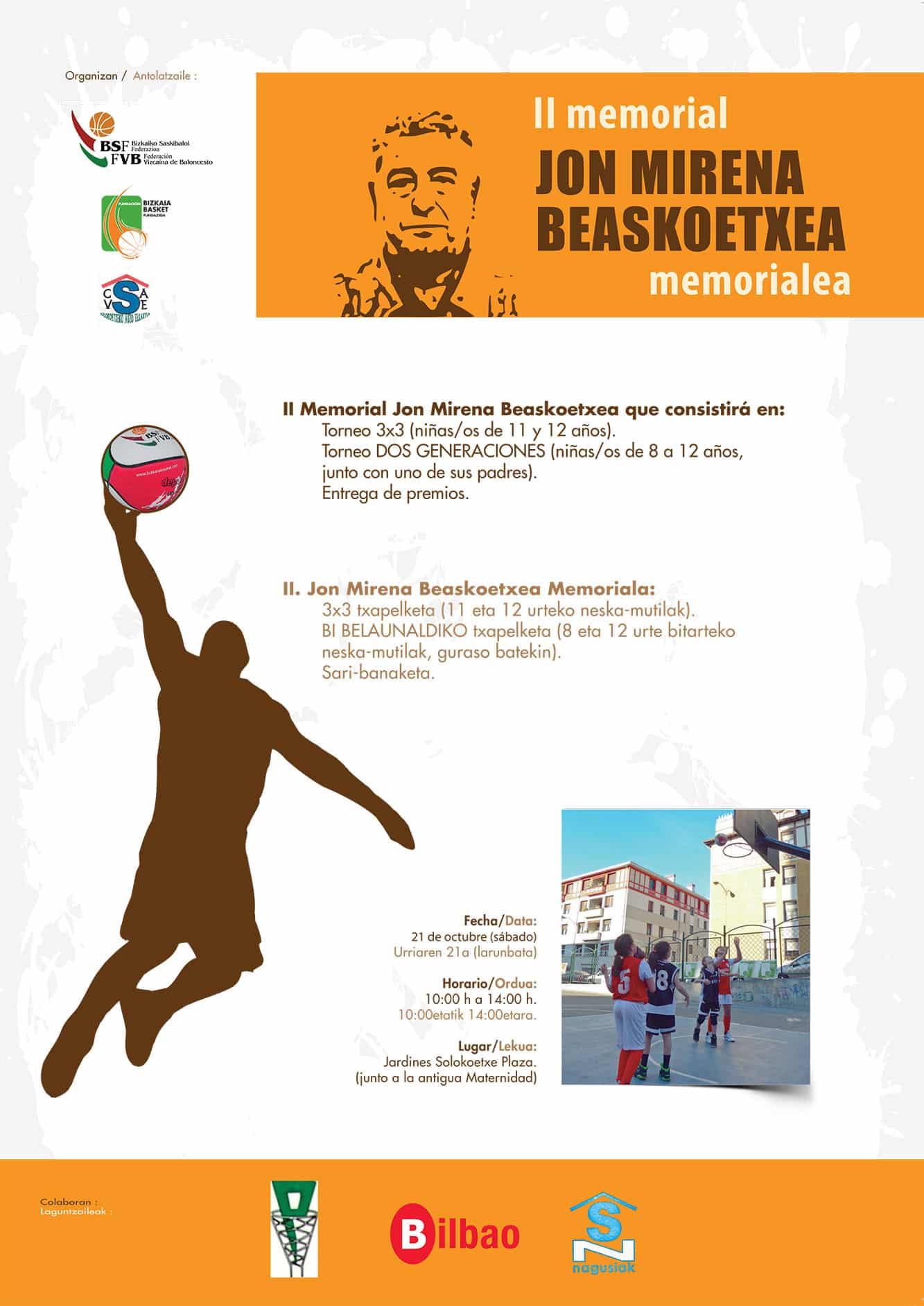 El próximo 21 de octubre celebraremos en la Plaza de Solokoetxe de Bilbao, el II MEMORIAL JON MIRENA BEASKEOTXEA, y, dentro del mismo, la Fundación BizkaiaBasket, realizará dos Torneos: