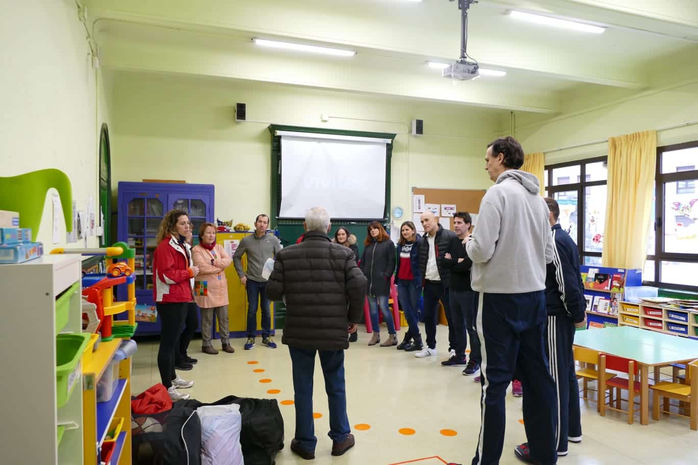 En primer lugar, se celebró una pequeña reunión con los profesores, a los que se les regalaron camisetas y, para el centro, un libro del 75 Aniversario de la FVB, siendo dedicado y firmado por tres ex-alumnos, que habían contribuido a la confección del mismo.