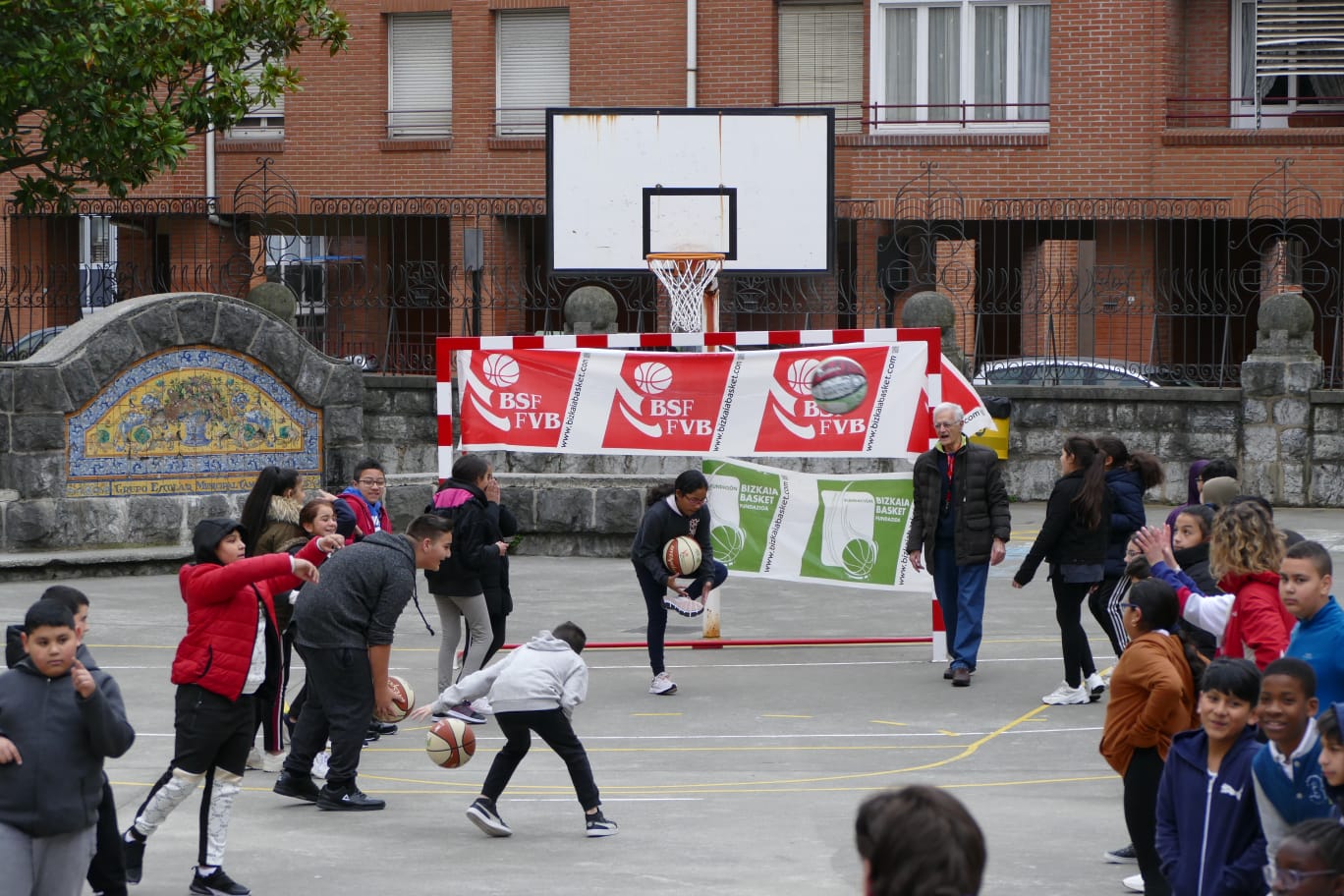 Nuestra Fundación organizó una jornada de iniciación al basket en el C.P. Tomás Camacho, en el Barrio de Torre Urízar de Bilbao que, en otro tiempo, fuera una de las buenas canteras de la capital vizcaína, de la mano del entrenador Michel Ureta.