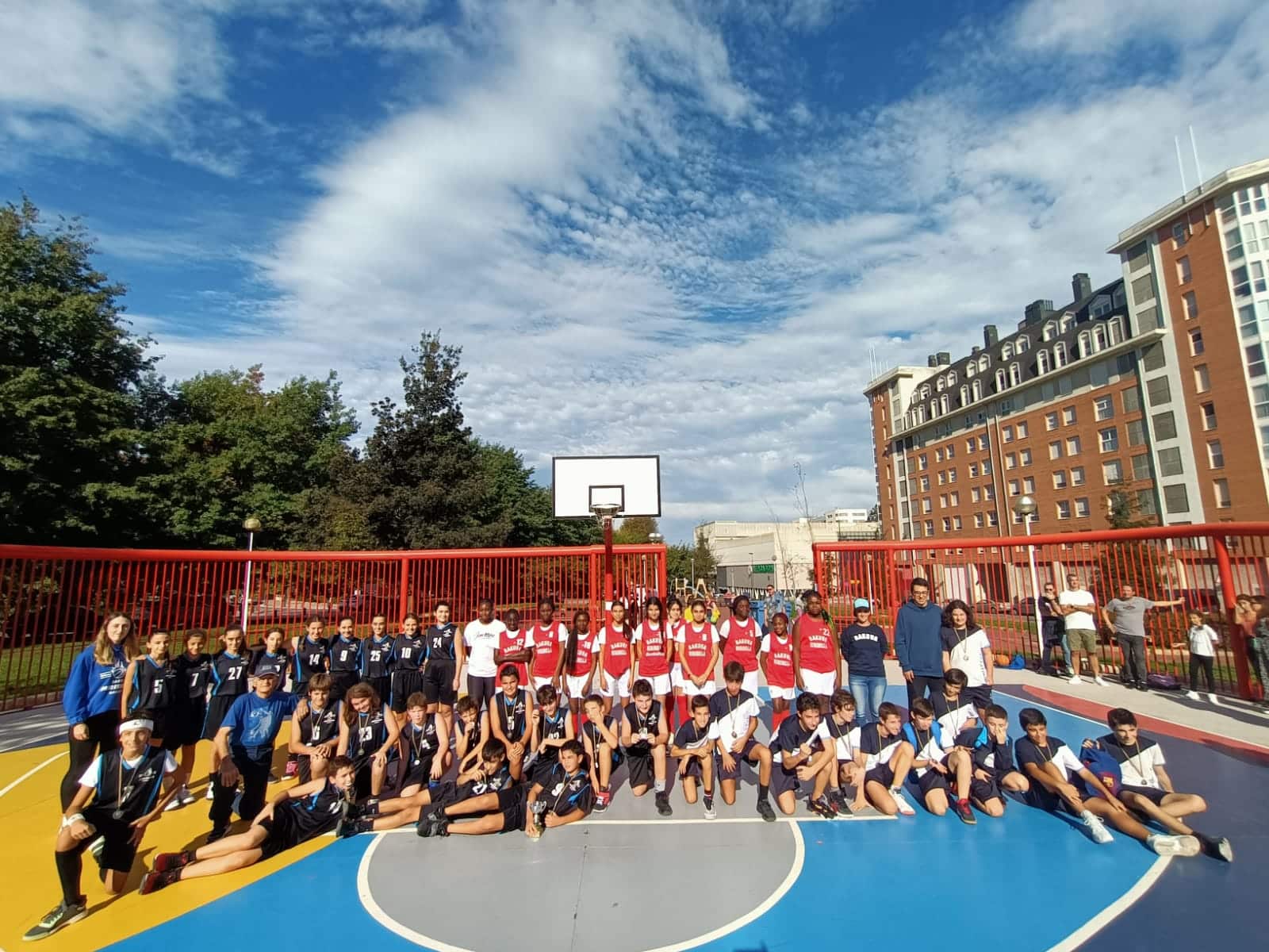 En una preciosa y otoñal mañana compitieron en la nueva cancha del Parque Emiliano Arriaga, sito en Miribilla de Bilbao en sendos partidos de la Categoría Infantil.